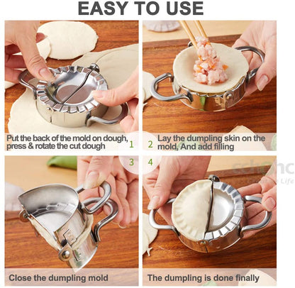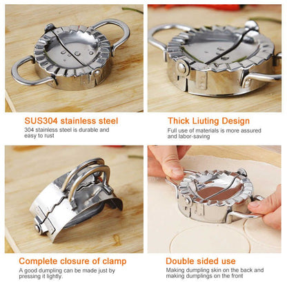 Stainless Steel Dumpling Maker\, a Good kitchen gadgets for making calzone, dumpling, pie, empanada, ravioli, pot sticker and pierogi, etc. Bring you more convenience and fun. A budget friendly Kitchen essentials make your lifestyle healthier. With the easy Dumpling cutter & press, enjoy cooking with your friends and family.