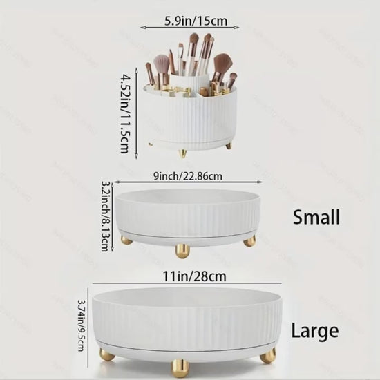 ● [Wide Application]: The rotatable storage tray has multiple functions, can be used as makeup organizer, fruit bowl, spice rack, bathroom organizer, etc.