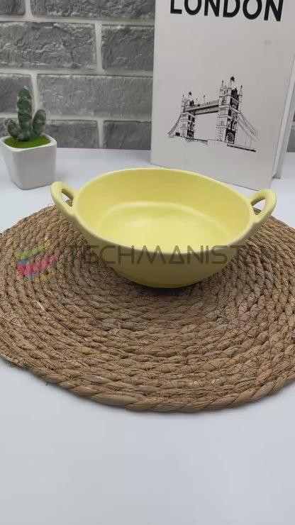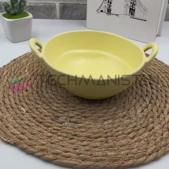 Porcelain Serving Bowls with Handles, for Salad, Pasta, Soup, Rice, Food Preparation, Clean Geometric Design