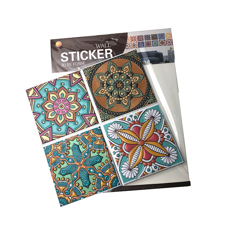 Pack of 4 - 3D Embossed Assorted Truck Art Themed Tiles Sticker (Each Sticker Size: 6x6 Inches)