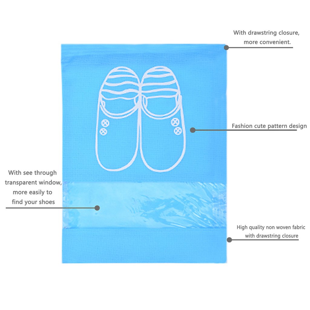 Non-woven drawstring shoe bag is made of high woven fabric with drawstring, the shoe bag has a transparent window that allows you to quickly identify the item without taking out. Drawstring closure makes it ea