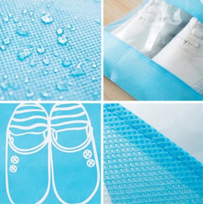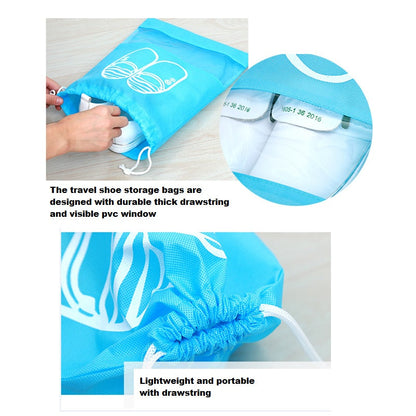 Portable Dustproof Water-Resistant Non-Woven Fabric Drawstring Shoe Storage Bag With Clear View Window, Travel Storage Shoe Clothes Bag Organizer Drawstring Tote Bag