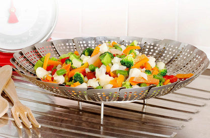 Premium Stainless Steel Folding Collapsible Rust Free Adjustable Kitchen Vegetable Steamer Basket - 23 cm, Foldable Steamer, Adjustable Steamer