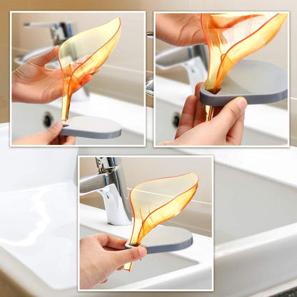 The self-draining soap dish uses an elegant leaf shape to keep the soap dry and clean.