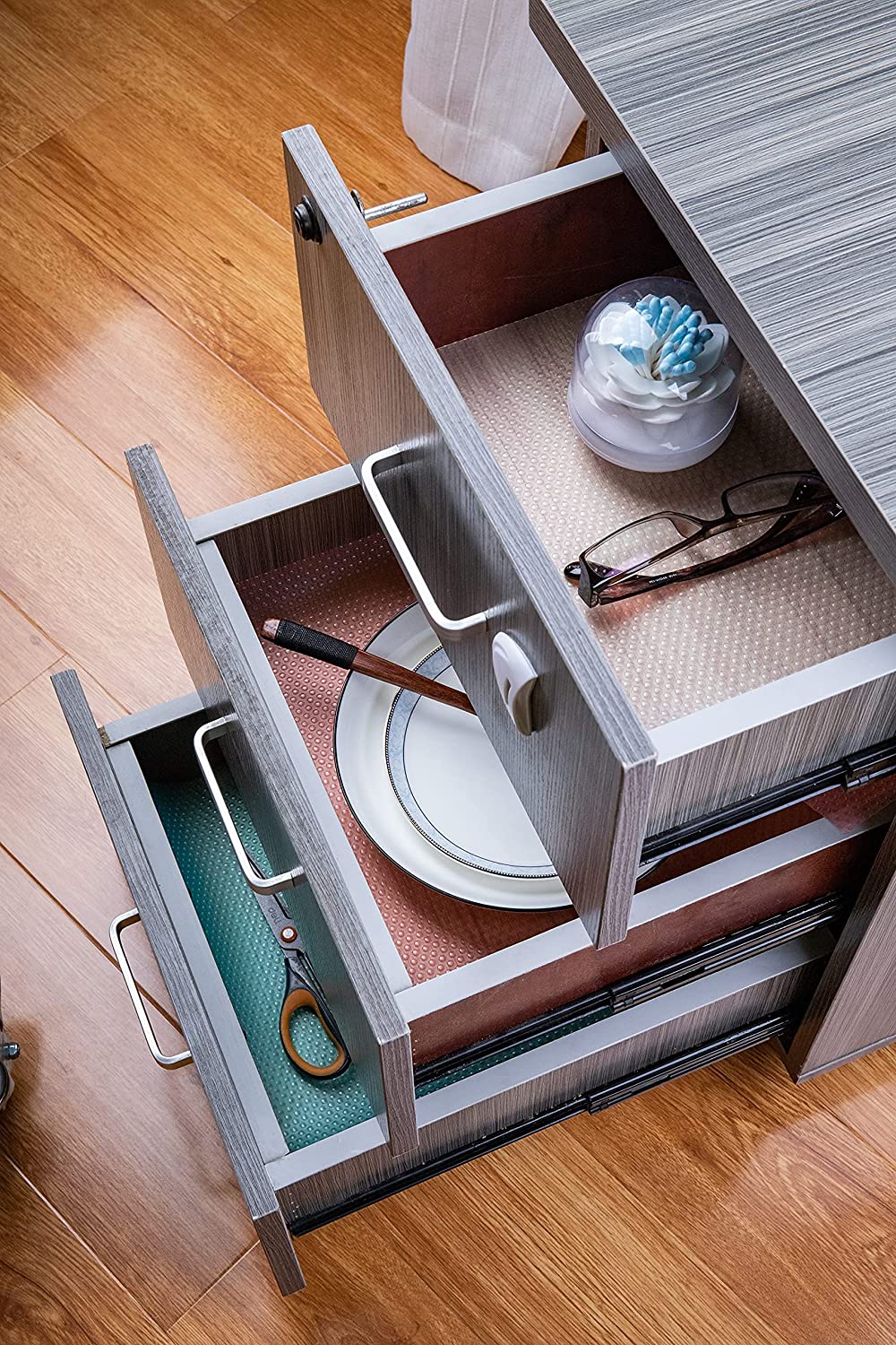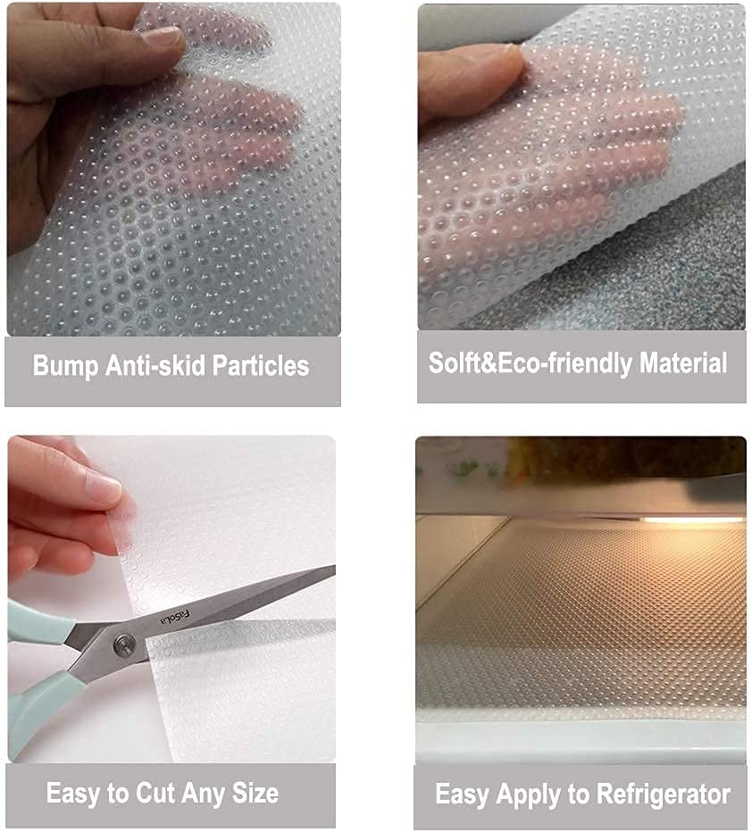 β MULTIPURPOSE: It can not only used as a refrigerator mat to keep fruits and vegetables fresher, but also can be used as a shelf liner, cabinet liner, drawer liner, placemat ,coaster, table mats, desk mat, enhance beauty.