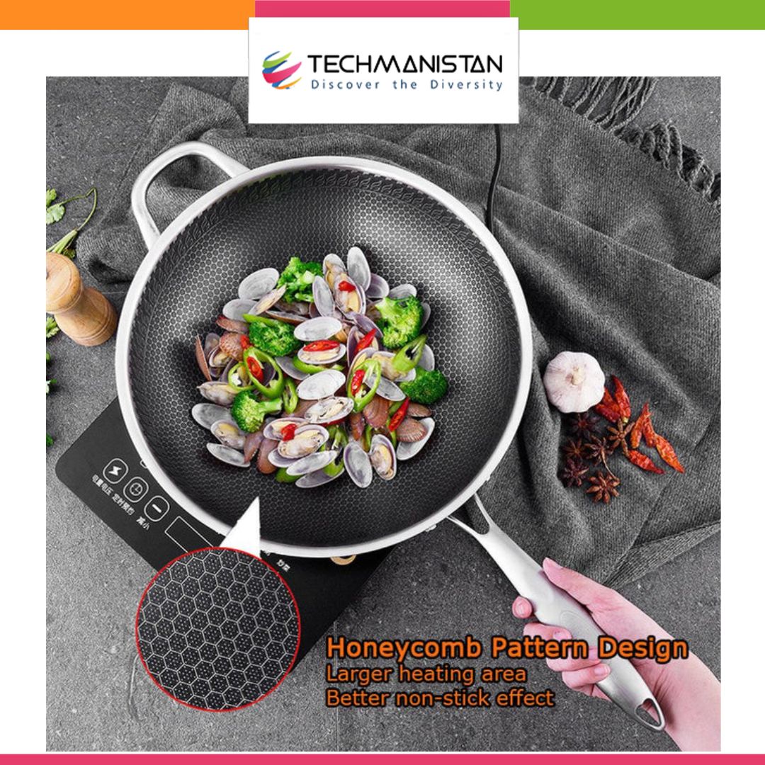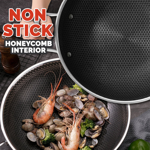 Honeycomb Laser Coated Nonstick Wok With Lid, Karahi