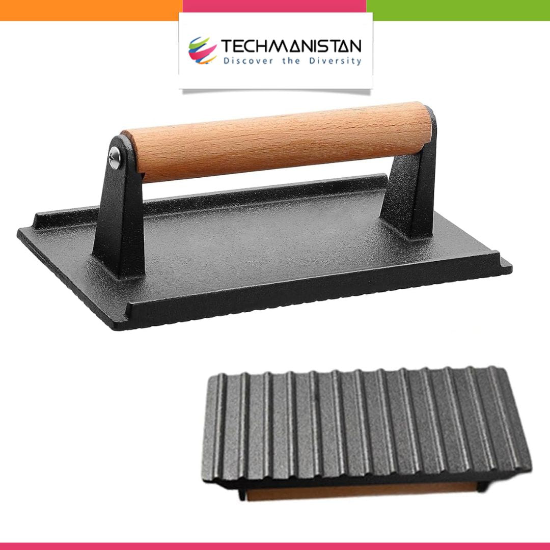 COMMERCIAL GRADE ACCESSORIES FOR GRIDDLE:This Cast iron flat grill press, they’re used by real griddle masters. Offers you professional chef-level flat top grill accessories for Blackstone so you can make your own restaurant-like cuisine at home.