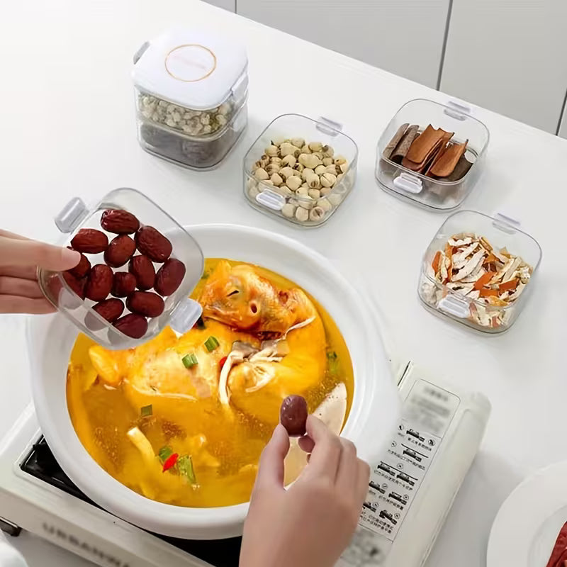 - IMPROVE SPICE STORAGE Revolutionize your storage routine with transparent spice pots. Keep your spices organized and easily accessible with the flexible stacking storage, while you can open and close each tier individually to save kitchen space.
