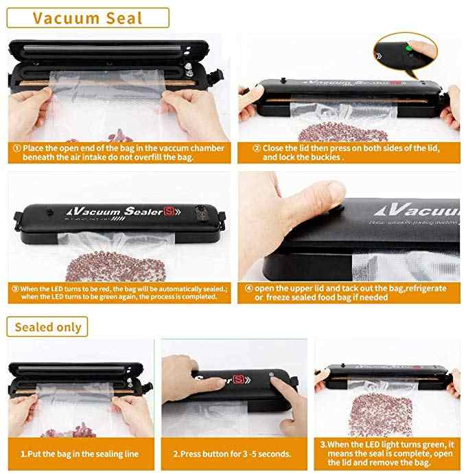- Enjoy a healthy life: The vacuum sealer machine keeps food fresh 5 times longer, stretching your dollar. Stores sealed foods to save fridge and freezer space, and the vacuum sealer machine works perfectly with Sous Vide cooks
